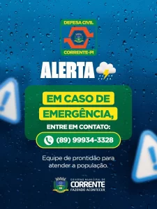 Em caso de ocorrências provocadas por fortes chuvas, ventos, alagamentos ou qualquer outro tipo de risco, os moradores devem entrar em contato pelo telefone (89) 99934-3328. A equipe está de prontidão para atender chamados e prestar o suporte necessário.