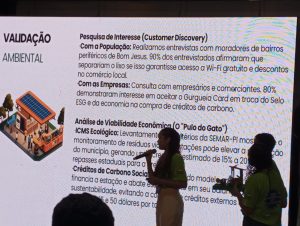 A aluna Camila Sousa, que fez apresentação do Lixo-Luz, disse que foi gratificante participar do Ideathon. “É uma experiencia incrível, estudamos dia e noite após sermos selecionados num grupo de 380 alunos das escolas de Bom Jesus. Estamos orgulhosos em representar nossa cidade e conhecer a capital do nosso estado”, afirmou, a estudante, muito emocionada por participar da competição.